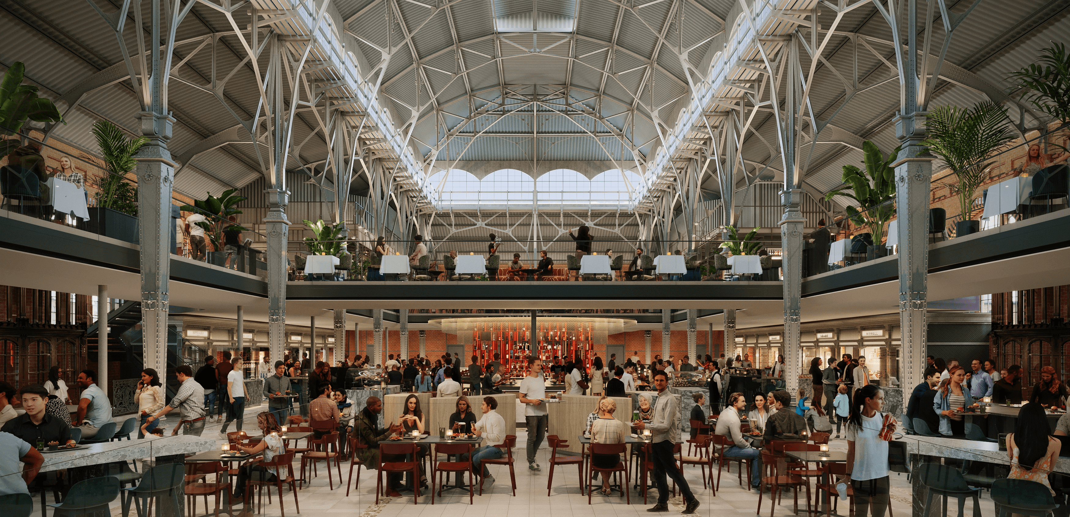 La nouvelle version de la halle se transformera en un véritable pôle gastronomique, sublimé par une programmation culturelle riche et variée.